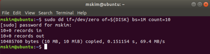 | sudo dd if=/dev/zero of=${DISK} bs=1M count=10 |