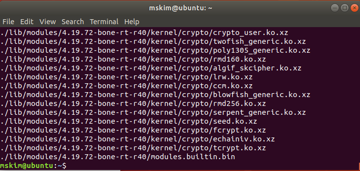 현재 사용하고 있는 커널버젼은 "4.19.72-bone-rt-r40"임을 확인 할 수 있다.